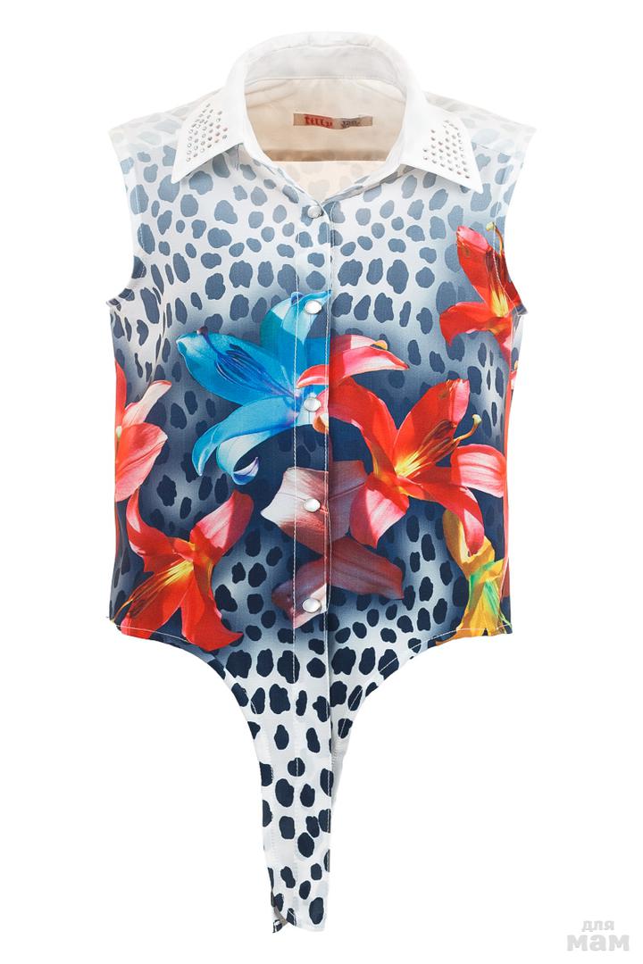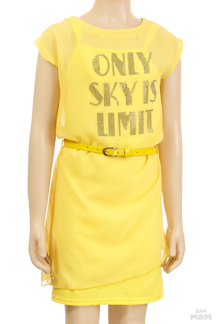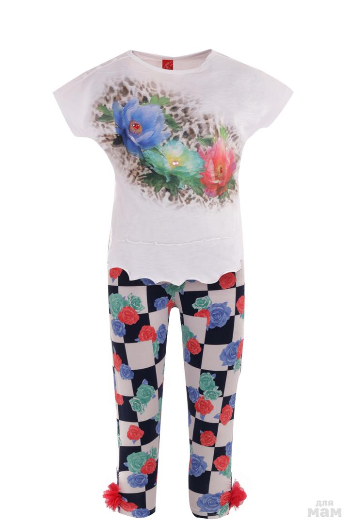6.Комплект для девочки, состоящий из туники и топа. Туника летящего силуэта с принтом из металлизированных элементов с разноуровневым низом.