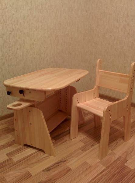 Парта изготавливается с учетом рекомендованных ГОСТом размеров для детских парт, столешница регулируется по высоте и наклону, высота сидения стула также может меняться. Мебель "растёт" вместе с малышом . Мы можем изготовить детскую парту и стульчик для ребенка любого возраста (рост от 76 см).