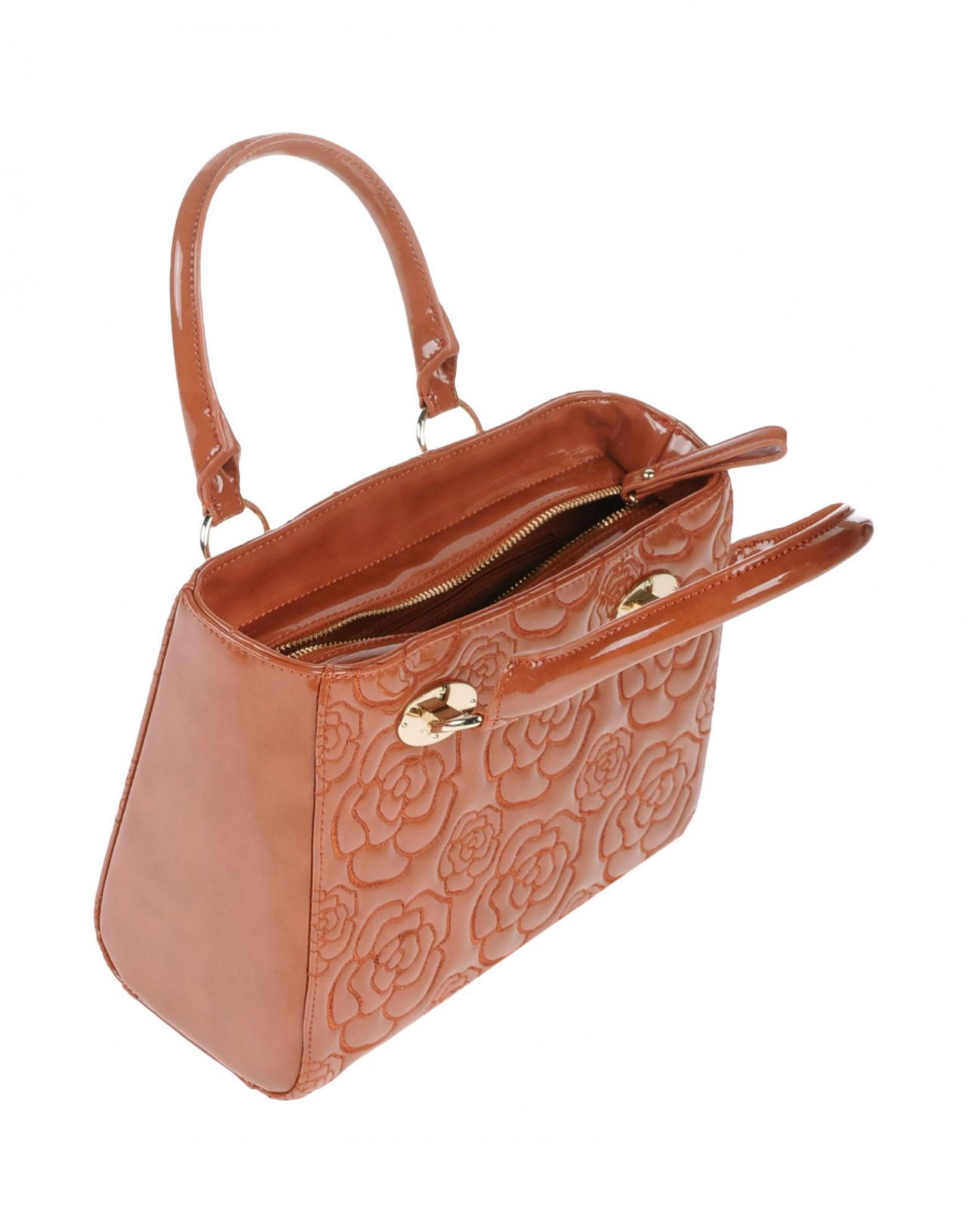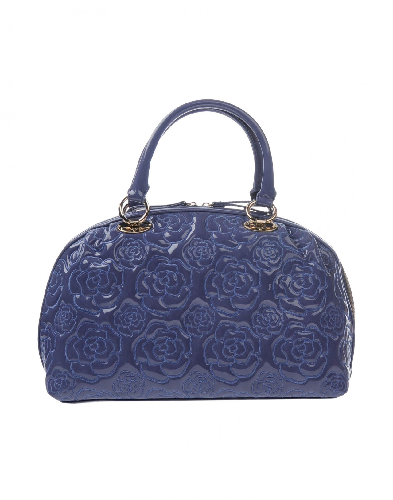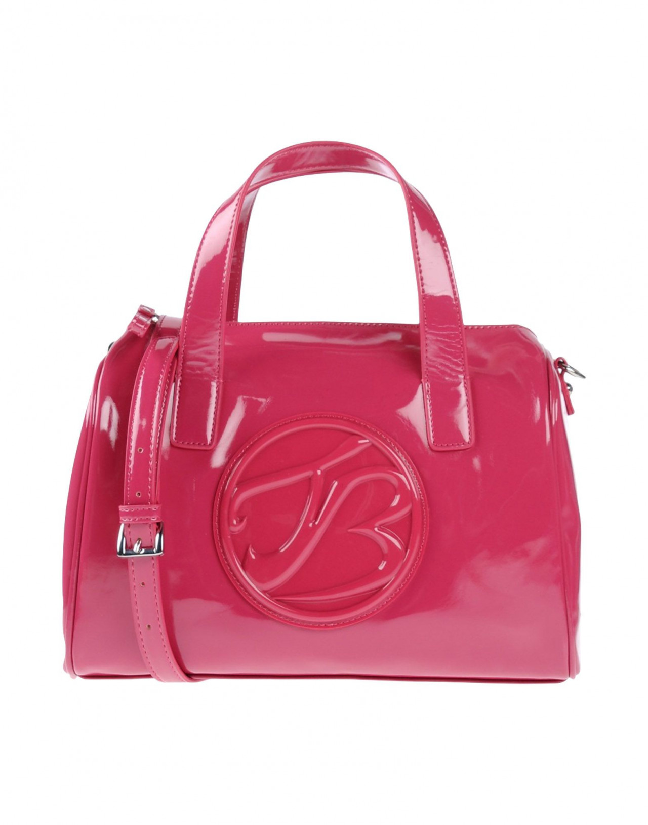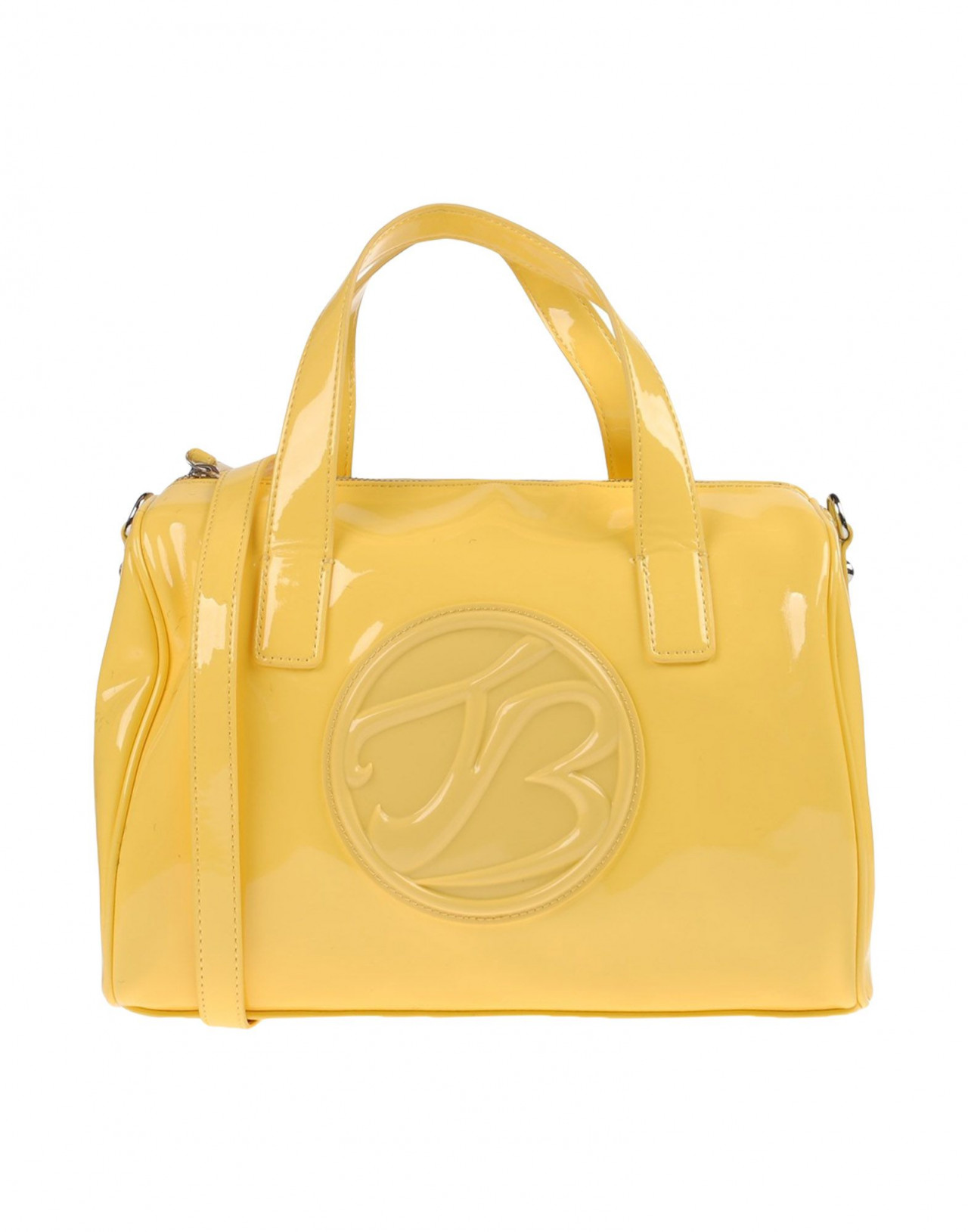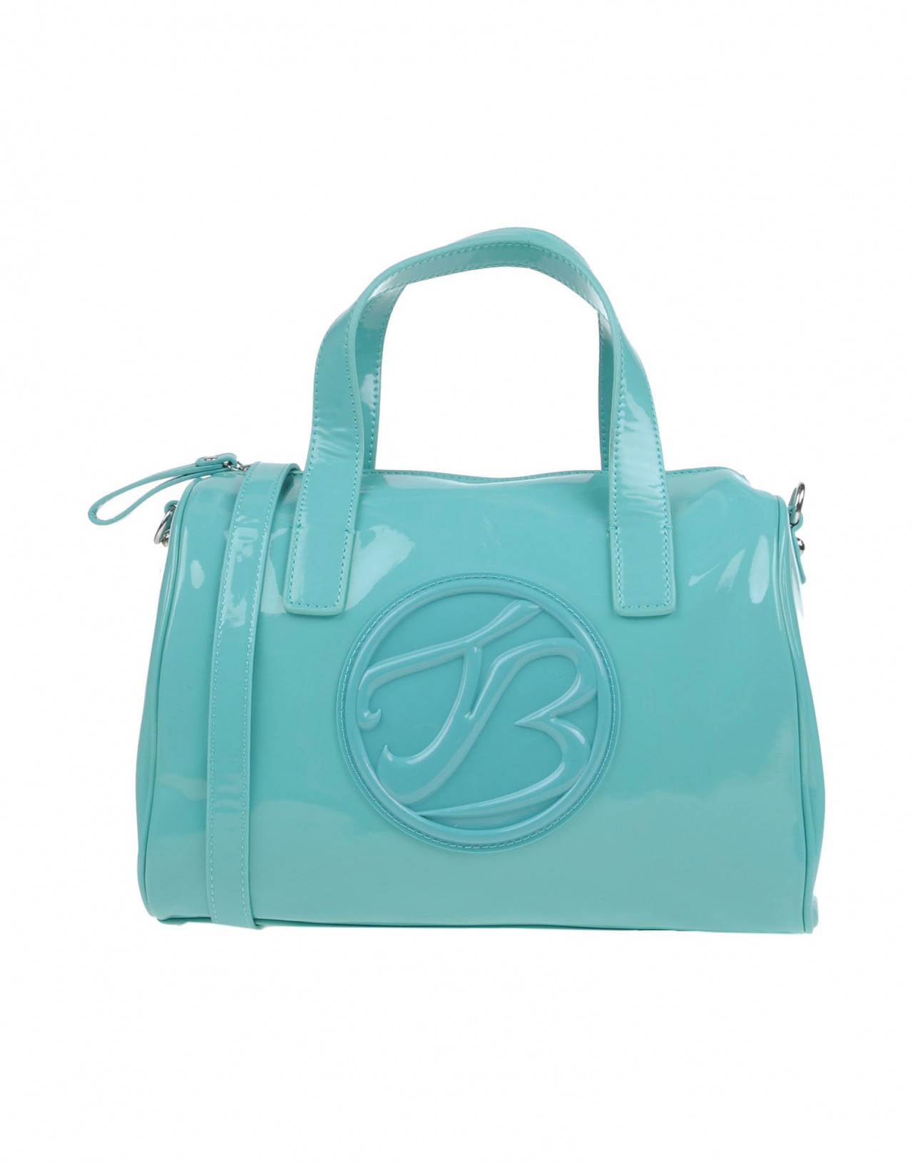 Текстильное волокно,средний размер, искусственная кожа, эффект лакировки, одноцветное изделие, логотип, молния, двойная ручка, внутренние карманы, съемный плечевой ремень, внутри на подкладке, сумка-баул.Размеры: Глубина 15 cm , Высота 22 cm , Длина ручки 40 cm , Ширина 27 cм
