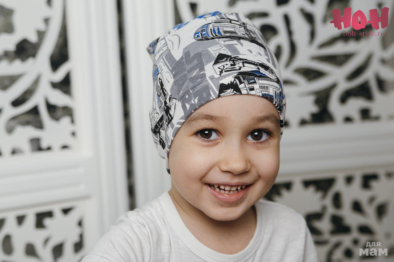 23) В-130 , Однослойная шапка с принтом , Цена 120 руб/шт - детские размеры (40-45, 45-50, 50-55)