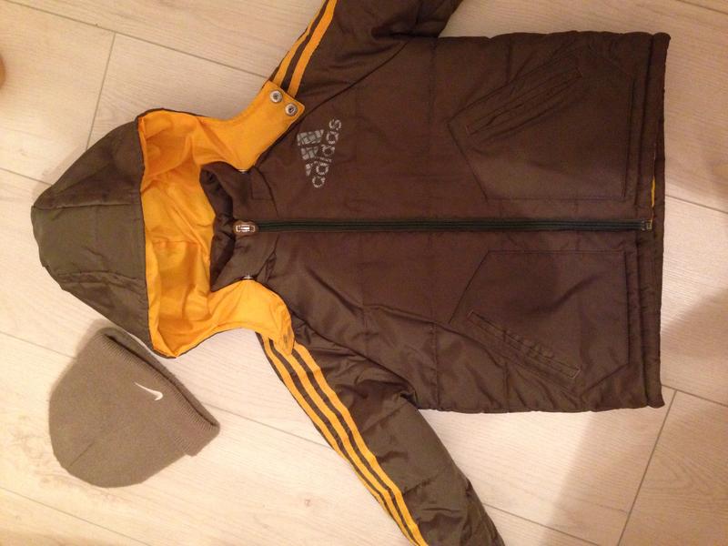 куртка адидас в идеальном состоянии, не промокает демисезон р 104- шапка найк в подарок-1200 р