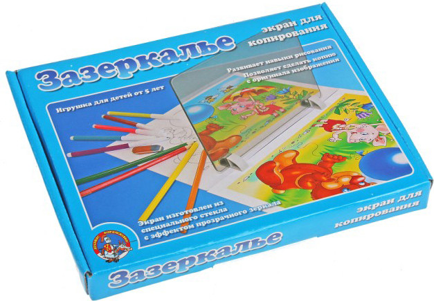 С помощью экрана для рисования ребенок с легкостью скопирует практически любое изображение с четкими контурами. Экран устанавливается на подставки, а с левой стороны кладется рисунок, который необходимо скопировать. Через экран на листе без изображения, он увидит копию рисунка. Остается только его повторить. Такой экранчик незаменим при обучении рисованию, а также при создании открыток и других поделок. Пригодится он даже маме и бабушке для того, чтобы перерисовать какое-либо изображение на ткань, а потом его вышить или раскрасить специальными красками.