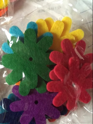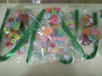 (количество пуговок, цветочков и проволоки, каждых около 40 шт.)