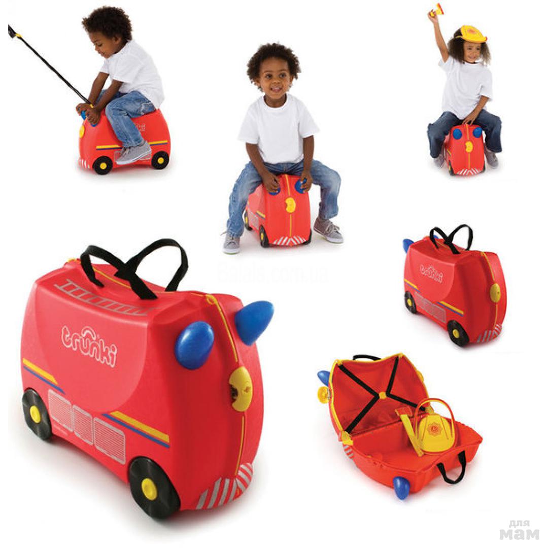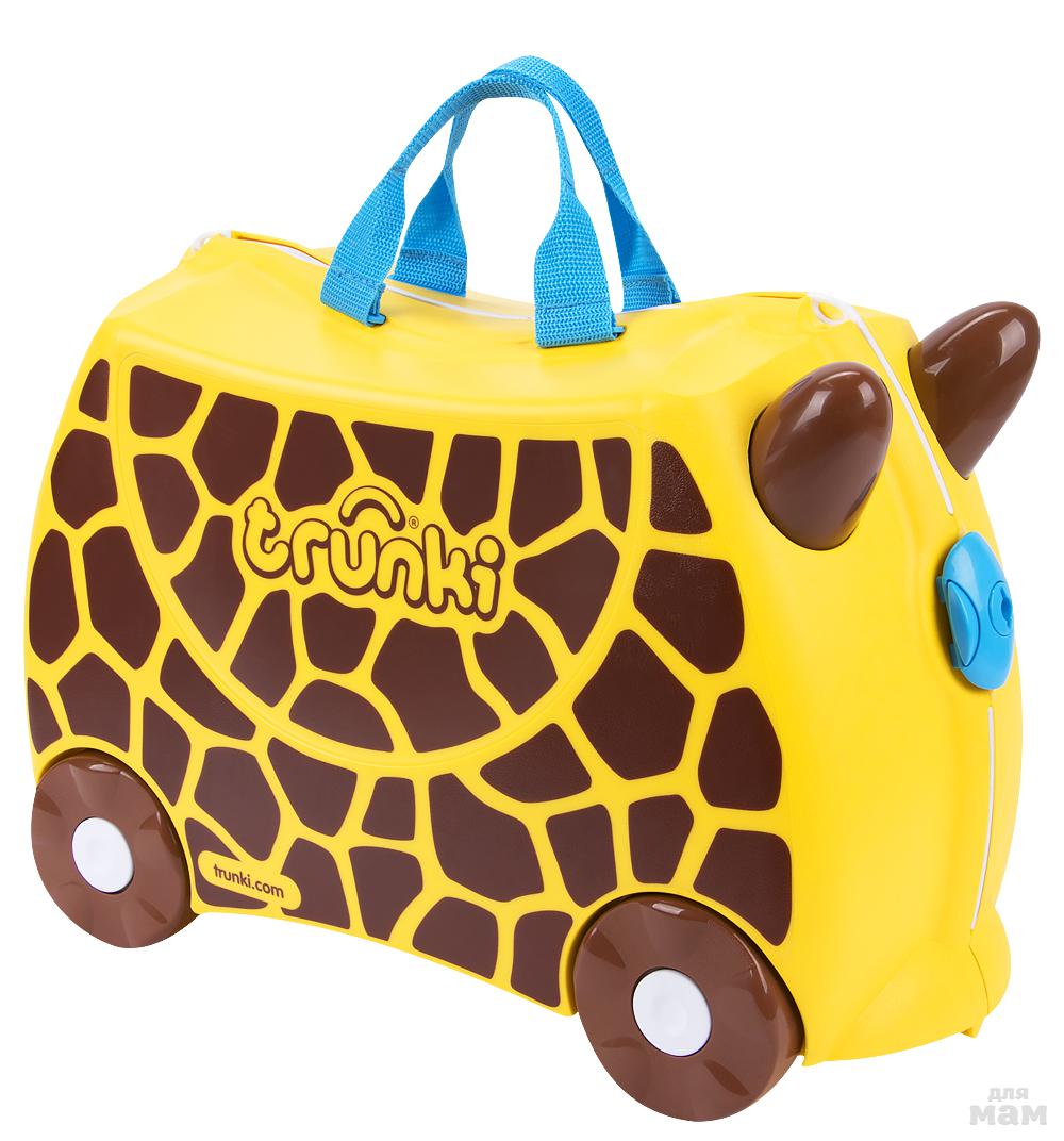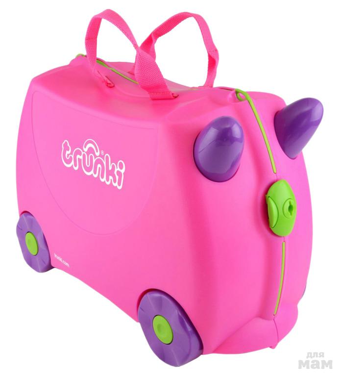 Чемодан на колесиках от Trunki не только вместит все детские вещи, необходимые на отдыхе, но и сослужит добрую службу родителям, а также станет отличным детским развлечением в утомительном пути. Чемодан Trunki легко использовать в качестве каталки - ребенок может сам отталкиваться ножками, держась за ручки, и катиться вперед, а также чемодан каталку могут везти родители, используя ремешок.