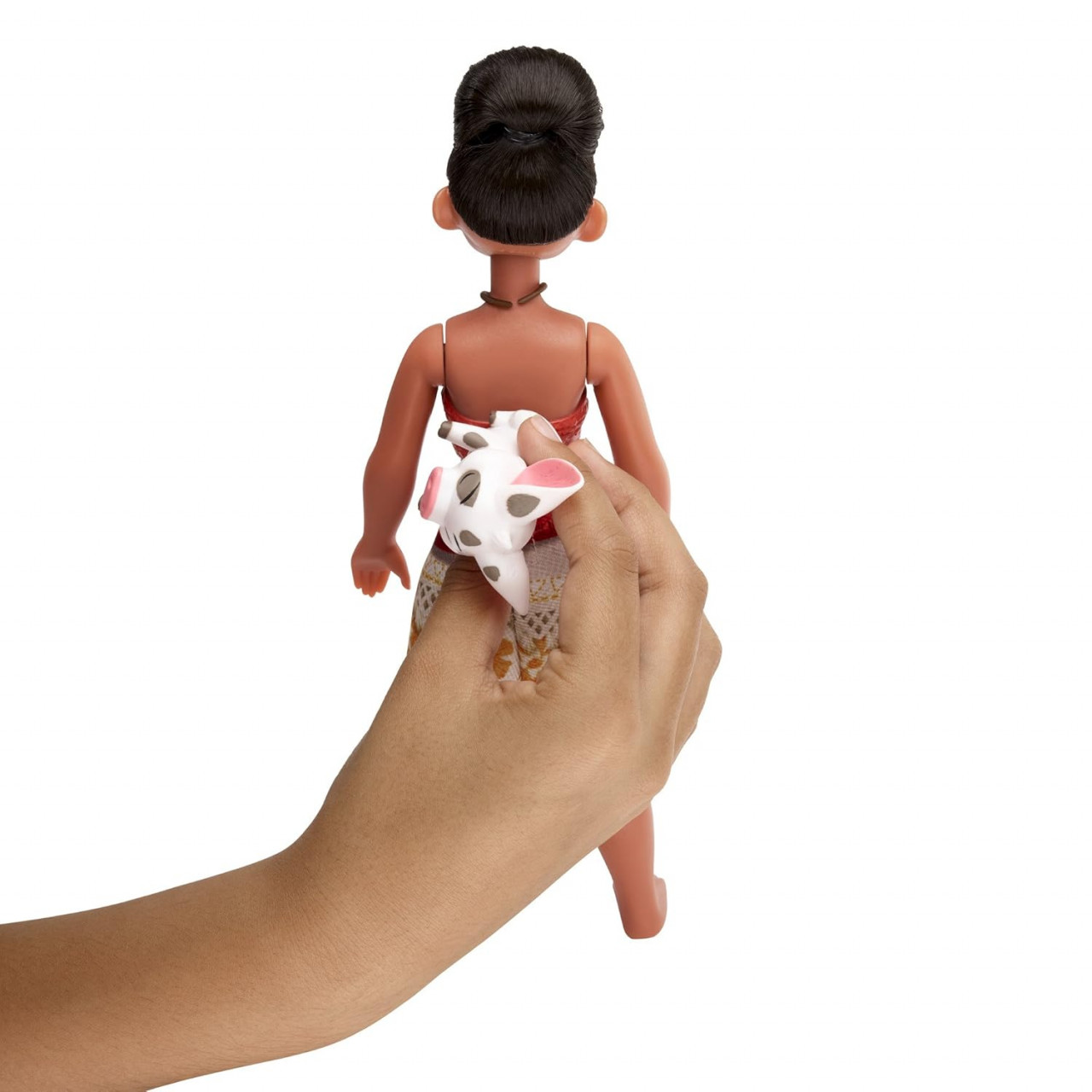 У нее на спине ключик, туда вставляется свинка , закручиваешь и моана руками плывет. В ванной супер)