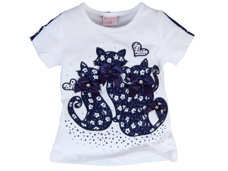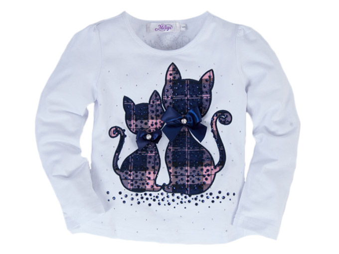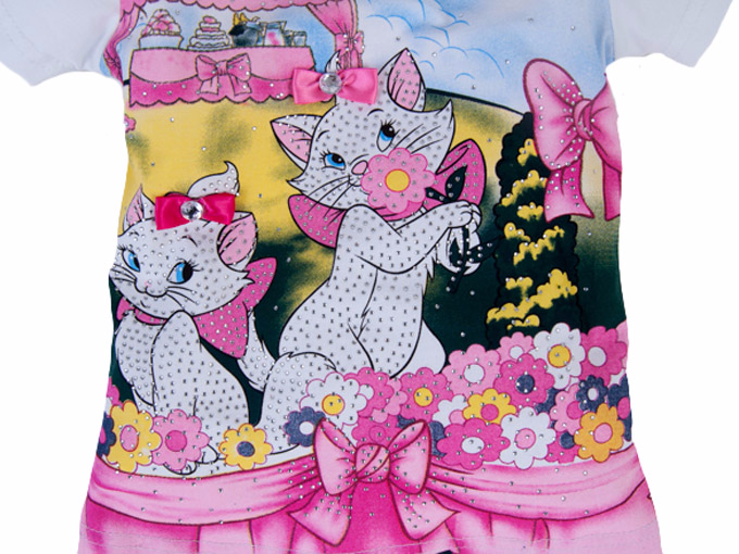 Милая, трикотажная туника для девочки, украшенная компанией кошечек.