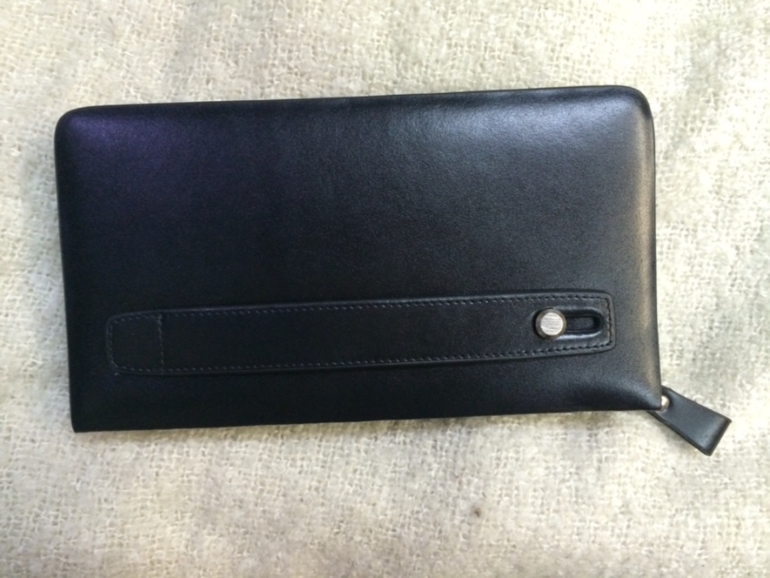 Очень удобно, без хлястиков на кнопке, и в тоже время кошелек закрыт, ничего не потеряется и не выпадет. Модель доступна ив других брендах Прада, Хьюго Босс, Монт Бланк
