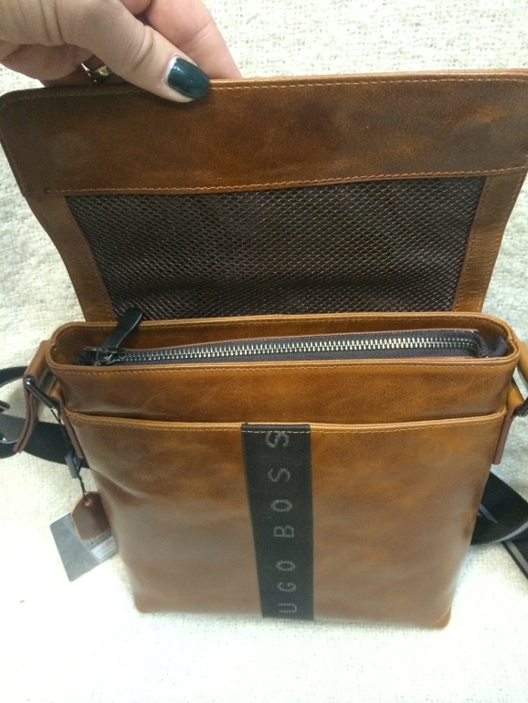 б) Мужская сумка планшет для документов для ношения через плечо/на плече Hugo Boss без клапана