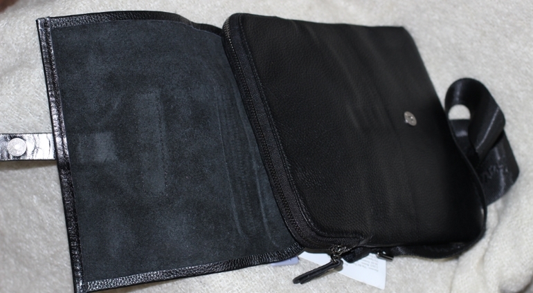 Внутри 2 отделения, карман на молнии и 2 кармана под моб. тел.