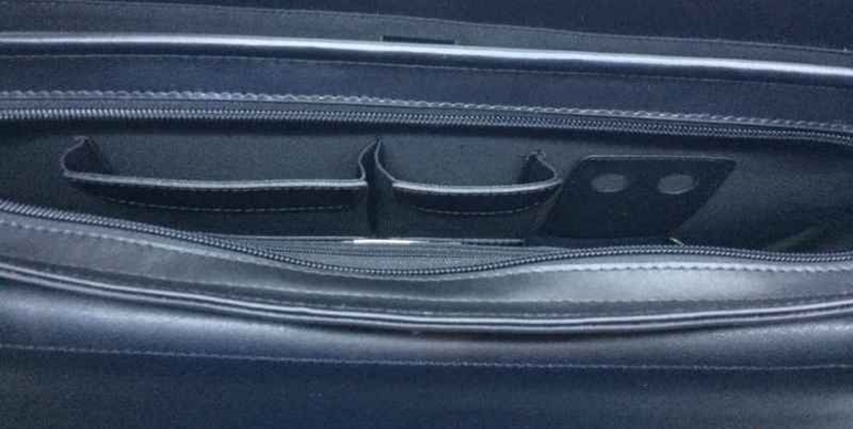 Внутри 2 отделения, карман на молнии и 2 кармана под моб. тел. Снаружи, спереди и сзади по карману.