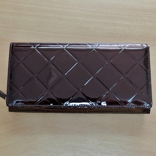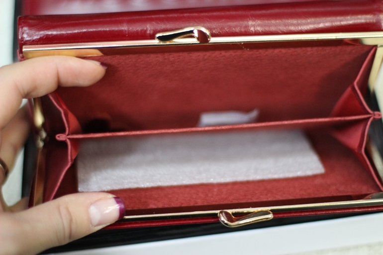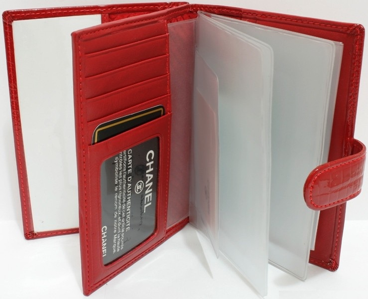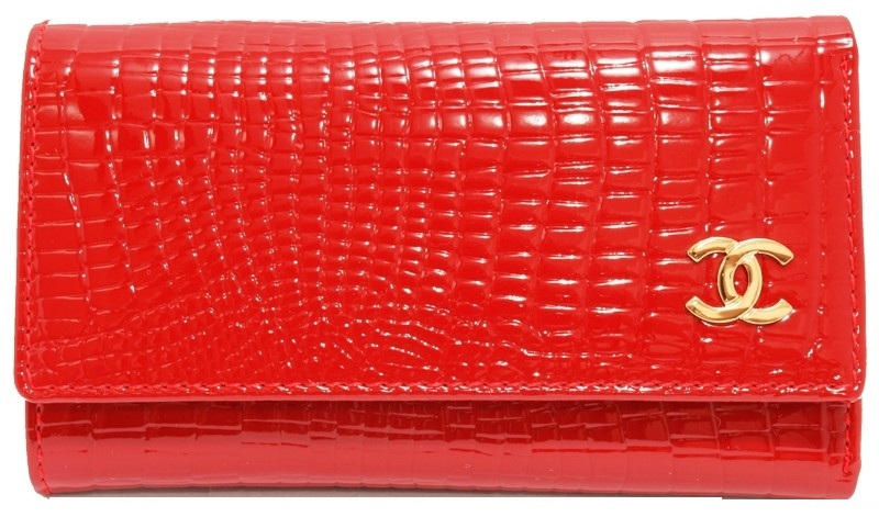 б) Женский Кошелек без бренда на кнопке Материал: Натуральная лаковая кожа Цвета: темно-красный, черный Размер: 19 * 9 см. Фурнитура: серебро Цена 1990
