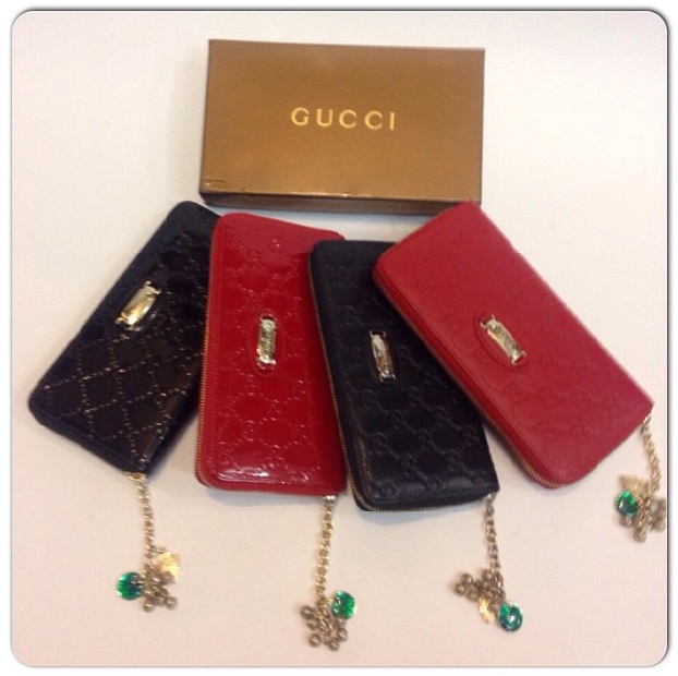 95) а) Женский Кошелек Gucci на кнопке. Цена 1790 Размер: длина 18,5 см, высота 9 см, толщина 3 см Цвет: черный, бардовый Цвет фурнитуры: золото Материал: натуральная кожа лак Несколько вариантов модели отделение для мелочи на поцелуйчиках внутри, сзади кошелька и внутри на молнии