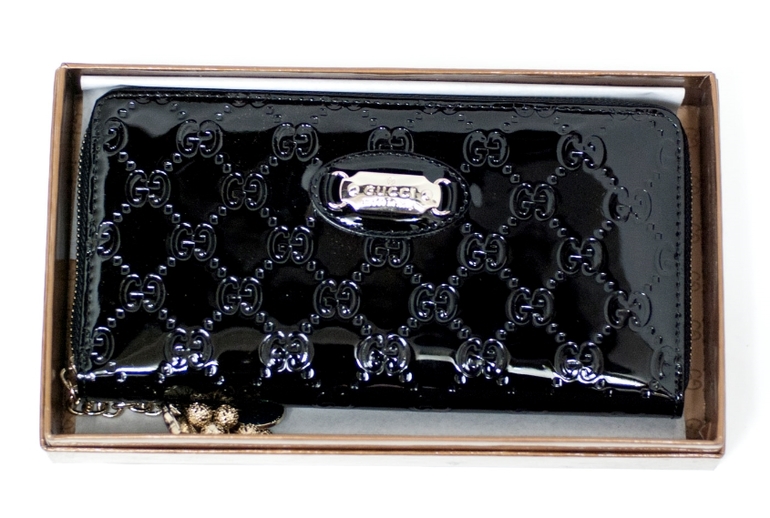 б) Женский Кошелек Gucci на молнии. Цена 1990 Размер: длина 18,5 см, высота 9 см, толщина 3 см Цвет: черный, бардовый Цвет фурнитуры: золото Материал: натуральная кожа лак