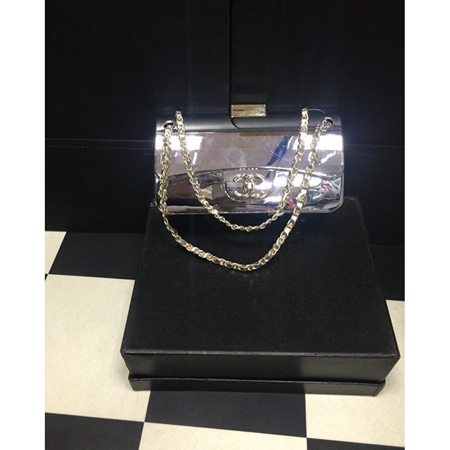 46 Женская сумка Chanel Материал: пластик Размер: мини Цвет: черный, золотой, серебряный Фурнитура: золото Цена: 3290 В комплекте длинный ремень