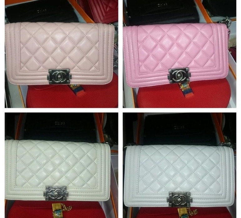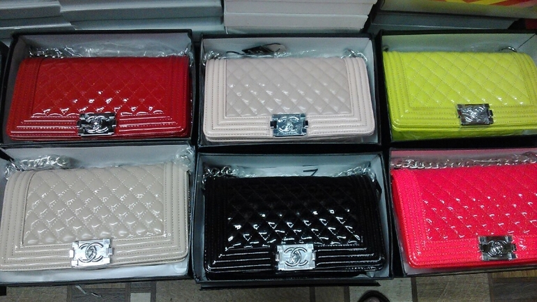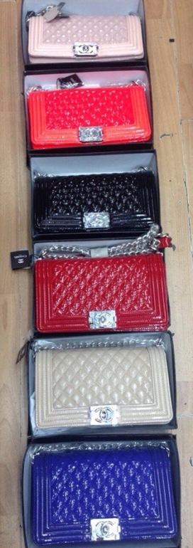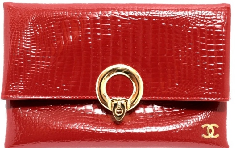 5 а) Женская сумка клатч Chanel Материал: Прессованная кожа Цвета см. фото: красный, сиреневый, голубой, розовый, фуксия, бежевый, черный. Фурнитура: золото Цена: 2790
