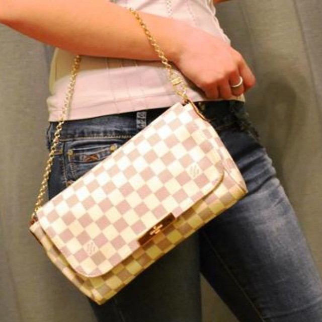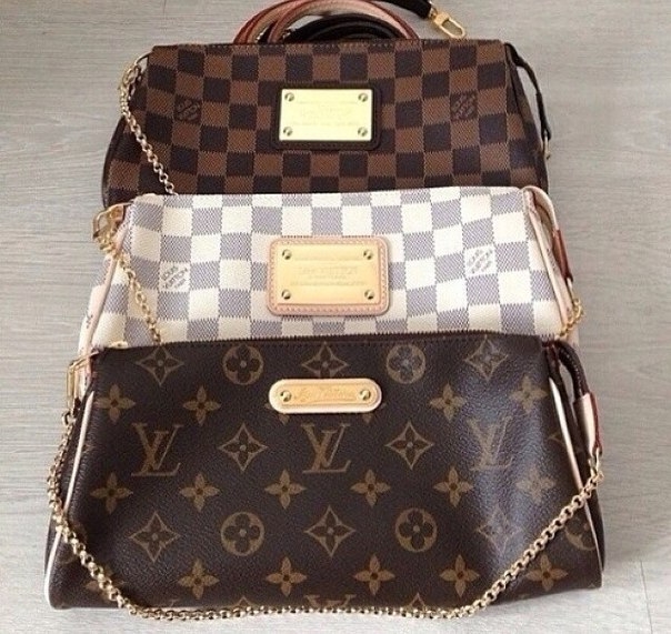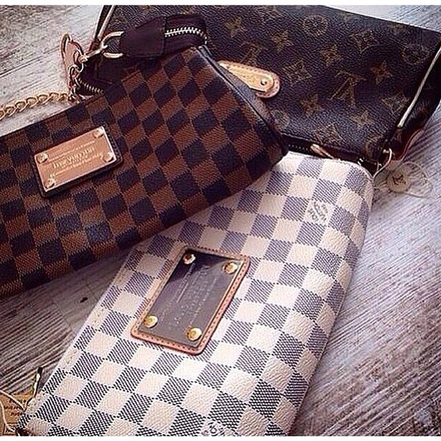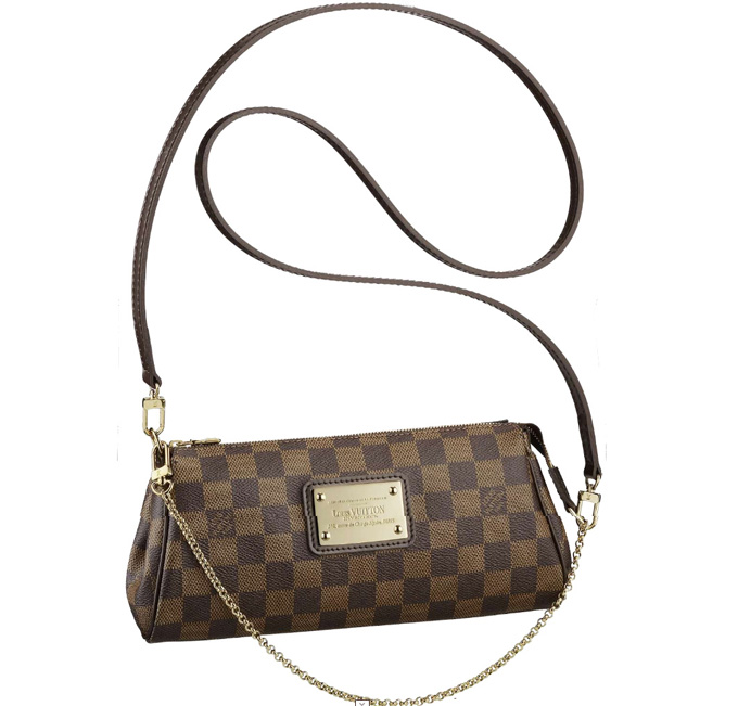 а) Женская сумочка клатч Louis Vuitton Eva Материал: Canvas (фирменный материал, используемый в продукции LV) Размер: 26*13 Рисунок: клетка или монограмма, белая клетка Цена: 2290