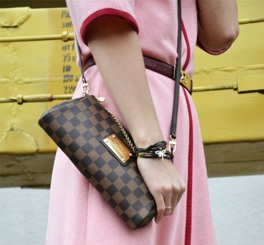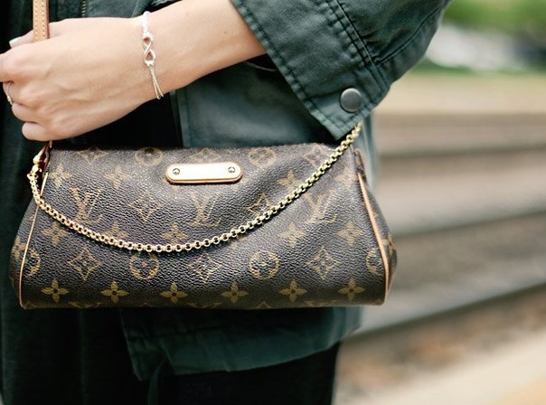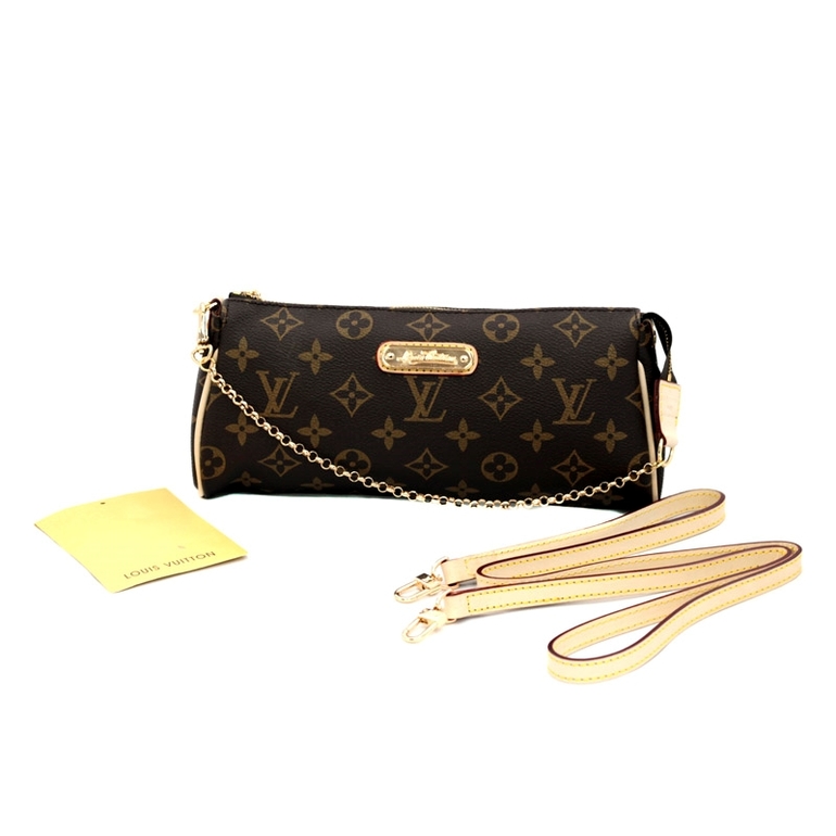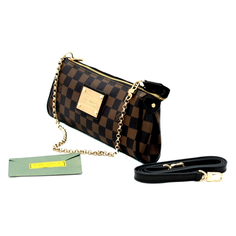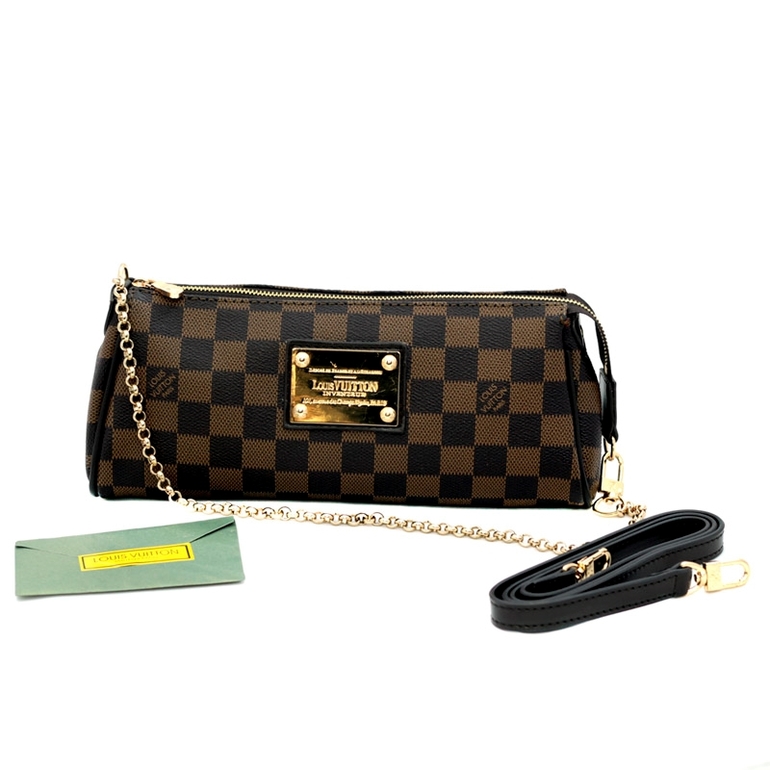 а) Женская сумочка клатч Louis Vuitton Eva Материал: Canvas (фирменный материал, используемый в продукции LV) Размер: 26*13 Рисунок: клетка или монограмма, белая клетка Цена: 2290