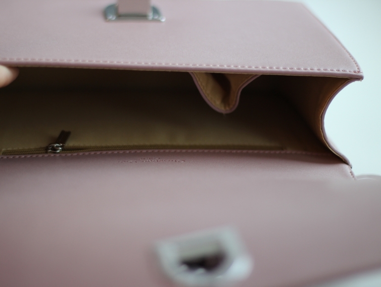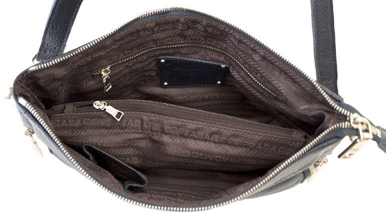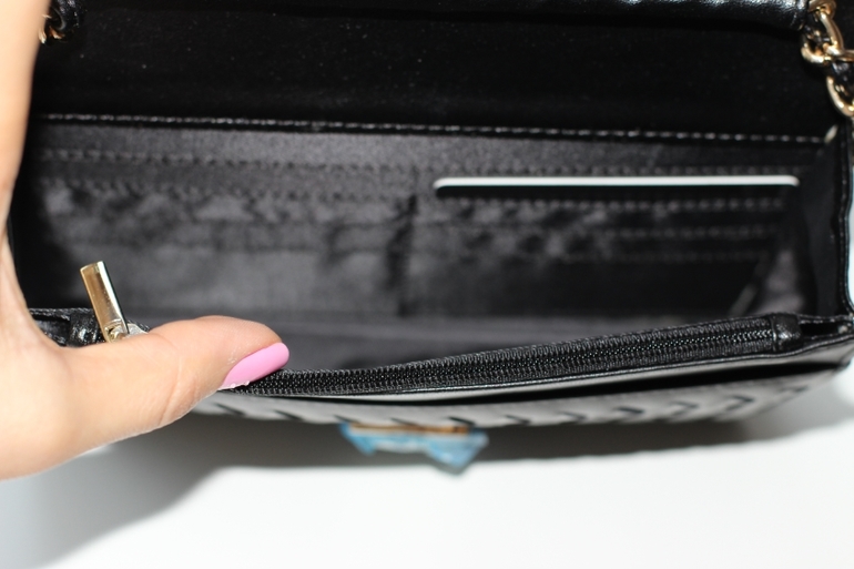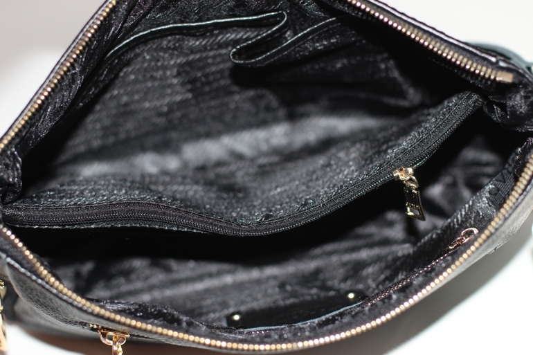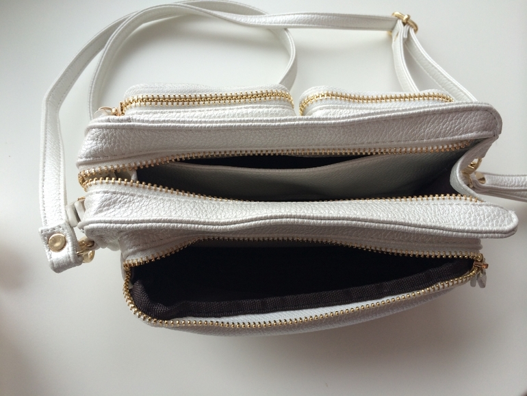 Одно основное отделение. Дополнительный кармашек на молнии. Зеркальце.