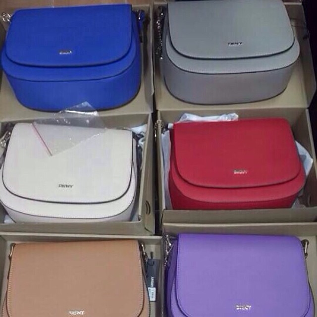 д) Женская сумка DKNY Материал: натуральная кожа 3 варианта Размера: мини 16 см / медиум 20 см/ XL 25 см Цвета: черный, синий, молочный, серый, красный, фиолетовый, коричневый розовый Цена - 3190/3290/3390 Молния на клапане просто для украшения, смысловой нагрузки не несет. Остатки наличие цветов уточняйте