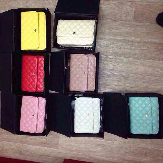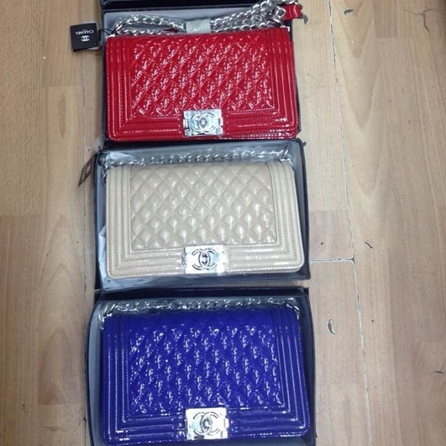 5 а) Женская сумка клатч Chanel Материал: Прессованная кожа Цвета см. фото: красный, сиреневый, голубой, розовый, фуксия, бежевый, черный. Фурнитура: золото Цена: 2790