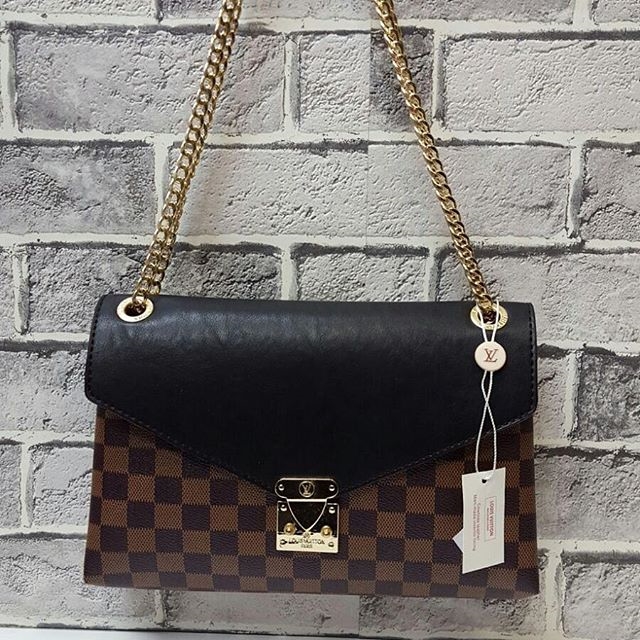 Женская сумочка Louis Vuitton портфельчик Материал клатча: канвас, натуральная кожа, Размер: 26*25 Цвет: коричневый клетка и буквы Фурнитура: золото Цена: 5490 КАЧ-ВО ЛЮКС
