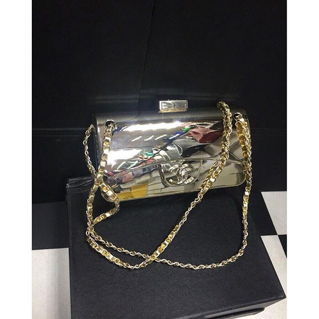 46 Женская сумка Chanel Материал: пластик Размер: мини Цвет: черный, золотой, серебряный Фурнитура: золото Цена: 3290 В комплекте длинный ремень
