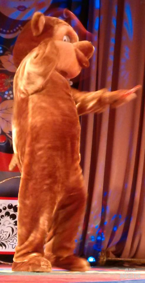 Дождались объявления о выходе на сцену медведя. Все объявили как положено, предупредили оставаться на своих местах, т.к. хищник. У дочки загорелись глазки, и на сцену выходит ЭТО!!! Степень шока 2-х летнего ребенка и обман ожидания в глазах не передать...