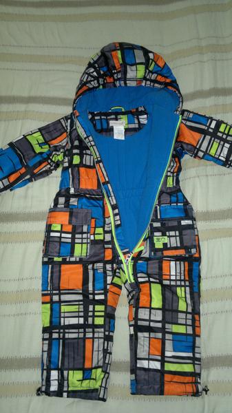 Размер 24м. Очень яркий, теплый, в отличном состоянии. Носили мало, быстро переросли пришлось покупать новый. Ткань не убиваемая, потертостей нет. Не промокаемый