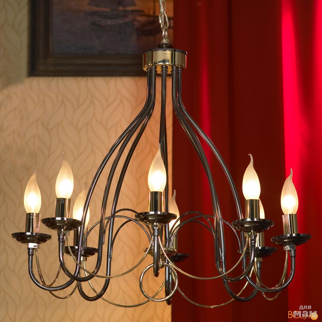 Много у нее спотов и достаточно своеобразных люстр и светильников, а также трековых систем.