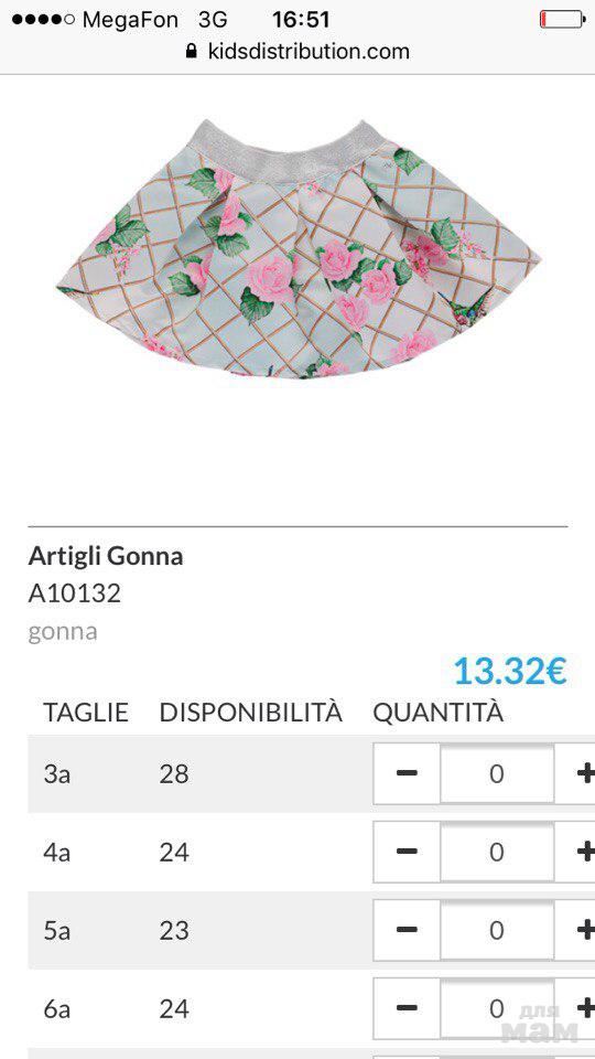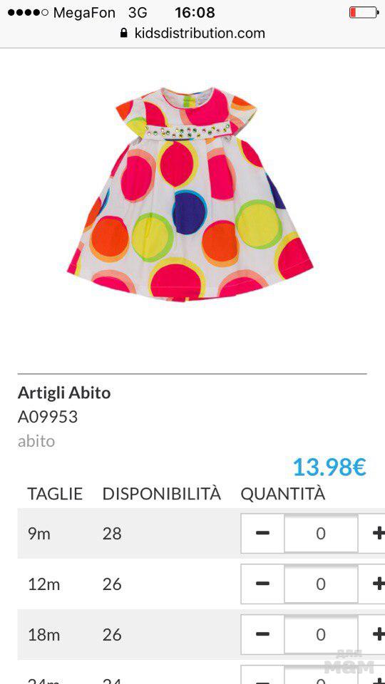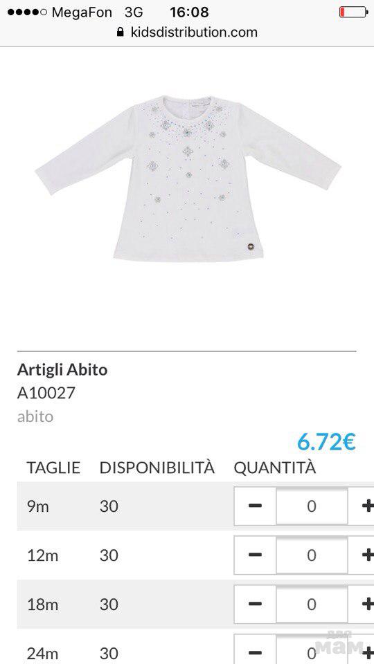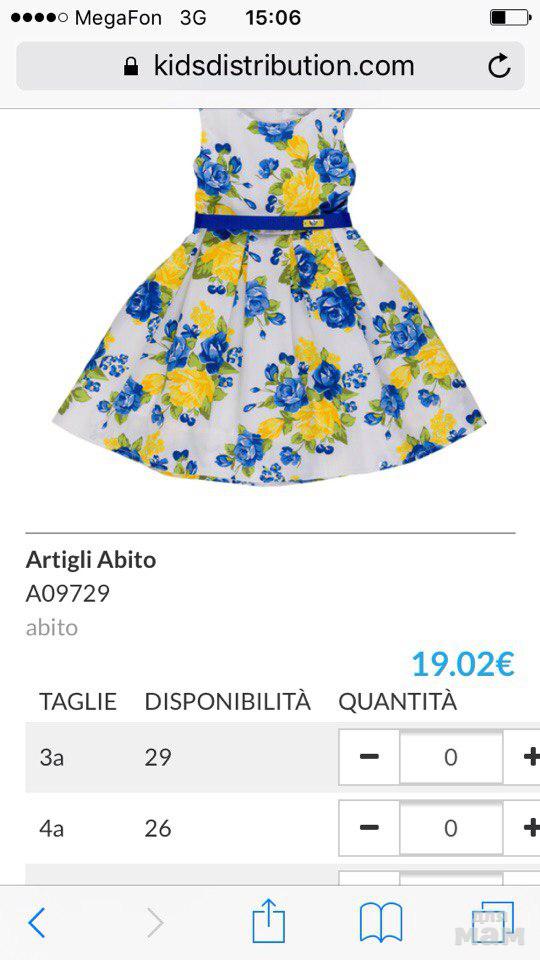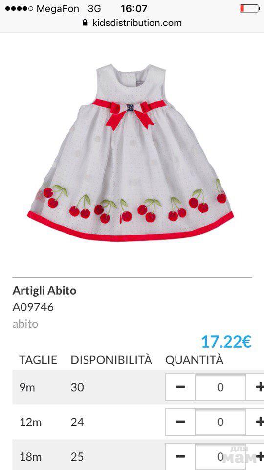ДЕВОЧКИ РАЗМЕРЫ ГДЕ УКАЗАНЫ ОТ 9 месяцев идут до 3 ЛЕТ!Потом 3 ГОДА ДО 7 лет!Потом 8 Лет ДО 16 лет! К цене 10% орг .Оплачиваем 100%.По курсу сбербанка.+15 евро доставка за 1 кг веса из Италии