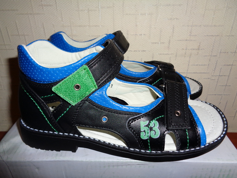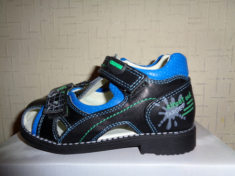 Сандалии Сказка для мальчика. Материал верха - комбинированная кожа, внутренний материал - натуральная кожа. Стелька с супинатором. Каблук Томаса.