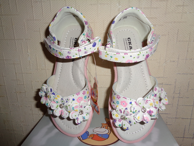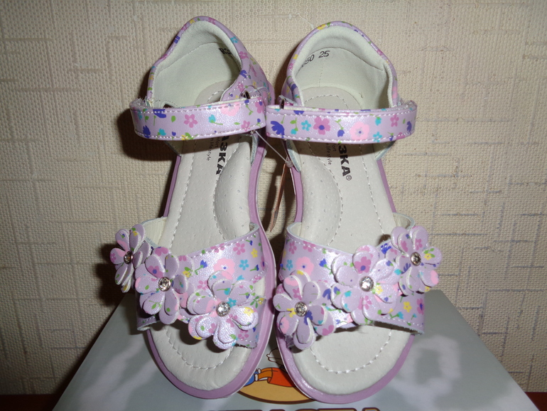 Сандалии для девочки. Материал верха - комбинированная кожа (натуральная+искусственная), внутренний материал - натуральная кожа. Стелька - натуральная кожа, с супинатором.