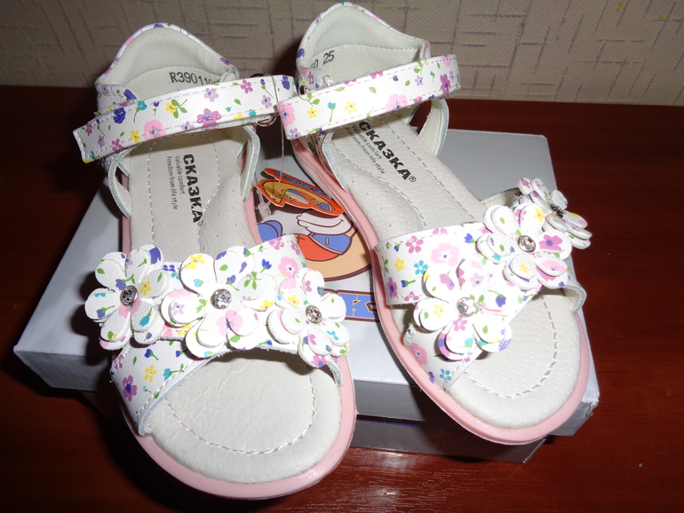 Сандалии Сказка для девочки. Материал верха - комбинированная кожа (натуральная+искусственная), внутренний материал - натуральная кожа. Стелька - натуральная кожа, с супинатором.