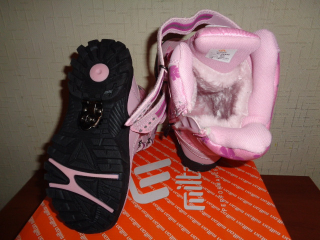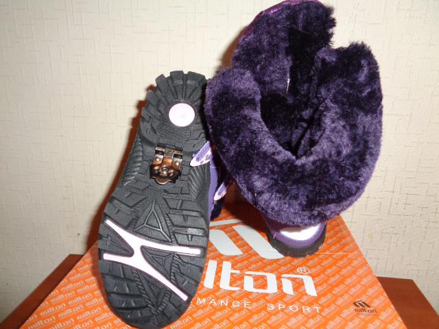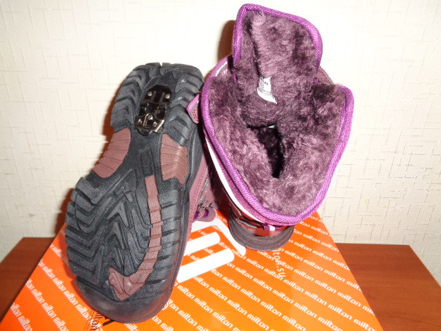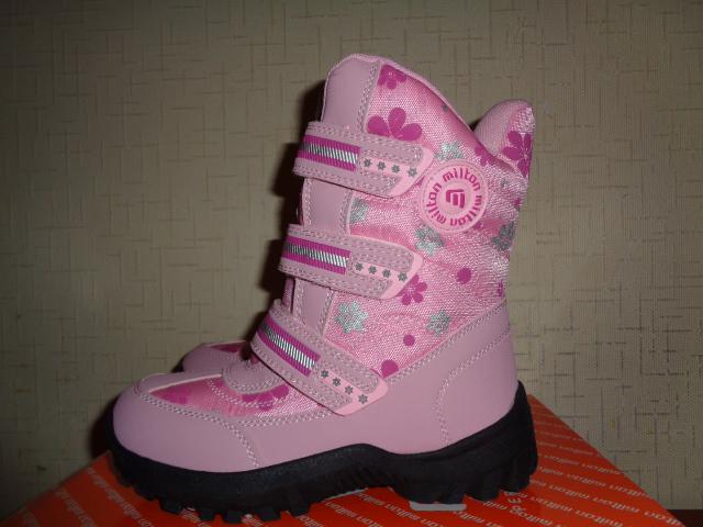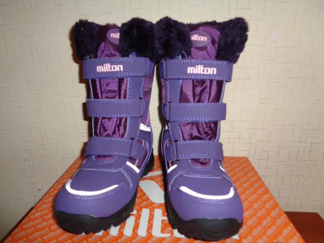 Сапоги Milton зимние для девочки. Материал верха - искусственная кожа+текстиль, внутренний материал - искусственный мех. На липучках. На подошве имеется антигололедная вставка.