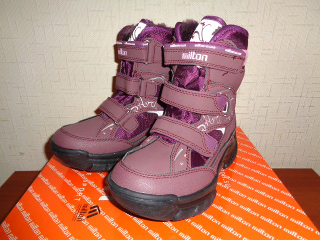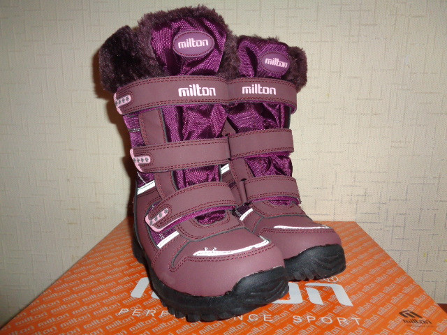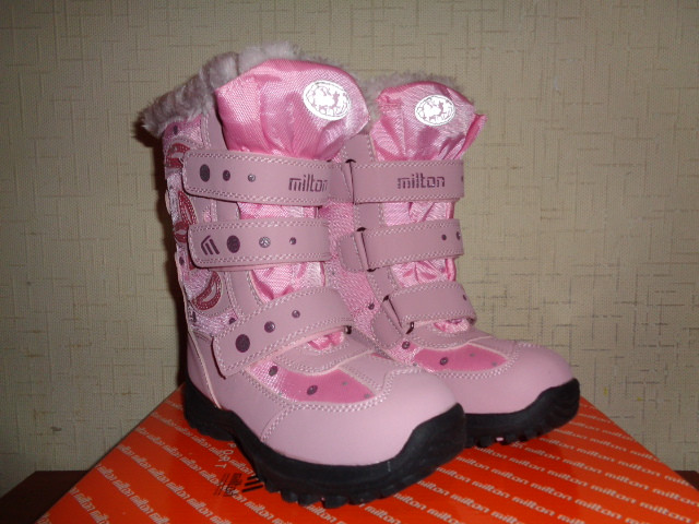 Сапоги Milton зимние для девочки. Материал верха - искусственная кожа+текстиль, внутренний материал - искусственный мех. На липучках и молнии. На подошве имеется антигололедная вставка.