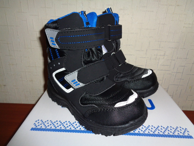Сапоги мембранные для мальчика. Сезон зима. Материал верха - искусственная кожа+текстиль, внутренний материал - искусственная шерсть. Стелька - искусственная шерсть.