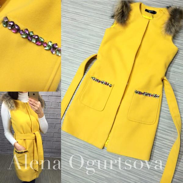 Обалденный кашемировый тренч без рукавов, новый! Мех натуральный, крепится на булавках, можно отстегнуть и в теплую погоду носить без него. Размер 44 длина по спинке 85 см.