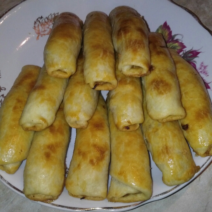 Аккуратно заворачиваем, выкладываем на противень швом вниз.