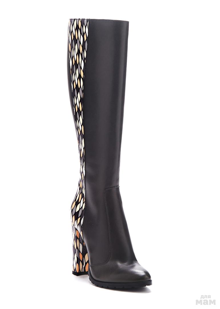 Кожа с подрезами серого цвета с блеском, лак черный, замша черная