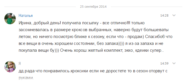 Запоздалый хвастик)) Покупали у Ирины босоножки и кеды. Дочка носит - не нарадуется. Спасибо!