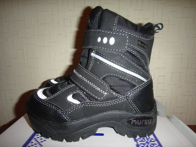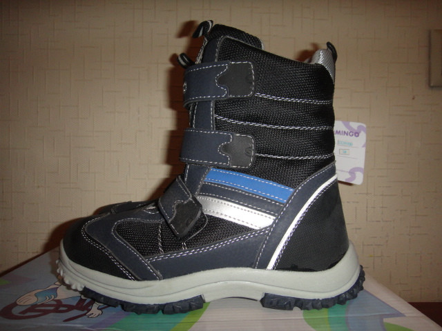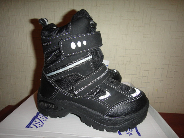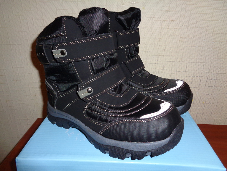 Ботинки зимние мембранные. Материал верха - искусственная кожа + водонепроницаемый текстиль, внутренний материал - искусственный мех на хлопковой основе. Температурный режим до -20 градусов.