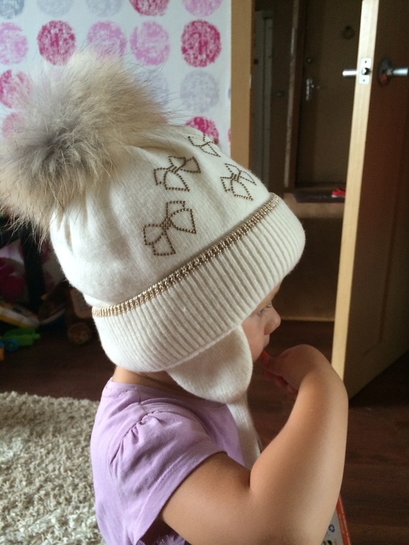 И мы покажемся, правда комплект покупала у Милы в прошлом году, но носить стали только сейчас. Комплект очень качественный, пряжа нежнейшая, помпоны ровненькие, стразы переливаются, супер — нам очень нравится))