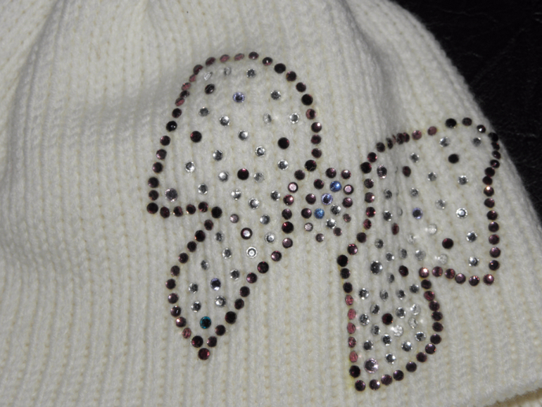 Новая шапочка абсолютно,без помпона,заказывала здесь у рукодельницы,но ошиблась с размером,плачу( Голова у нас как то незаметно выросла и шапка эта пролетела. Шапочка белого цвета (не белоснежного,такой спокойный белый),бантик из разноцветных страз (а-ля чоби),шапка двойной плотной вязки,зимняя! Размер 46-48 см сядет отлично,прилепить свой помпон подходящий по цвету к наряду и шапочка под любой комбез подойдет!....1000 ре