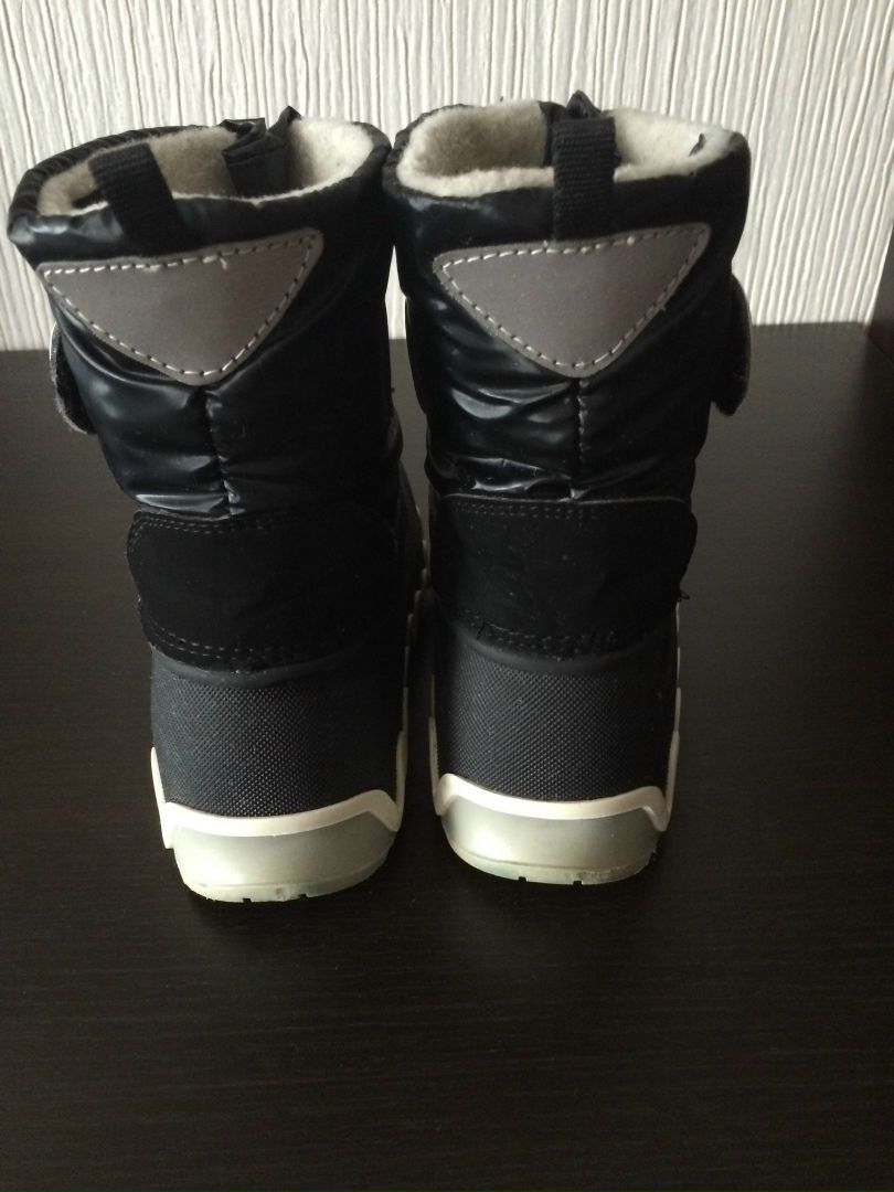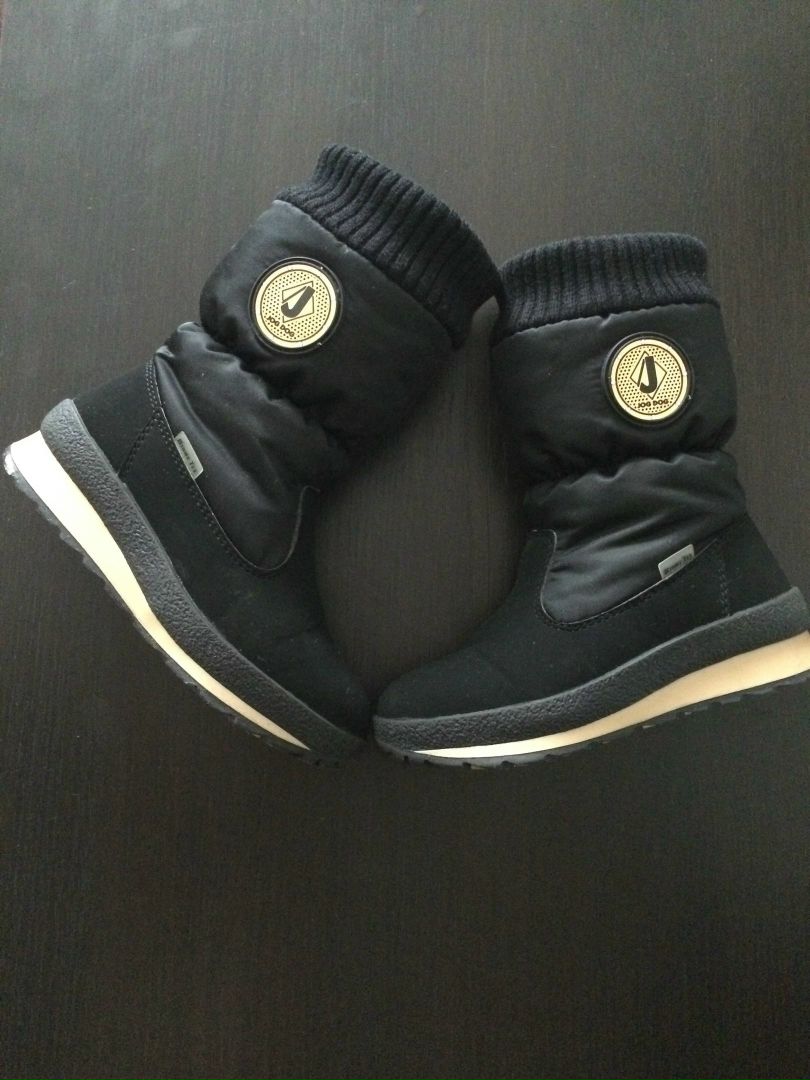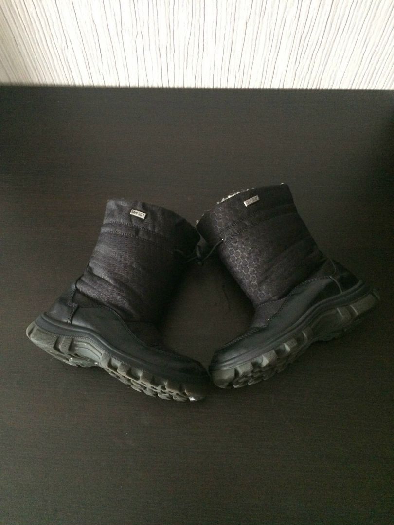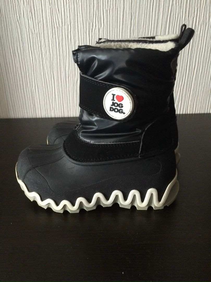 Jog Dog состояние отличное,на толстом слое шерсти,на зимнюю слякоть незаменимы,легкие.раз27/28 мы носили на ногу 17см на шерстяной носок. .Замерить внутри не возможно. Внутренний сапожок не вынимается.2500р продано