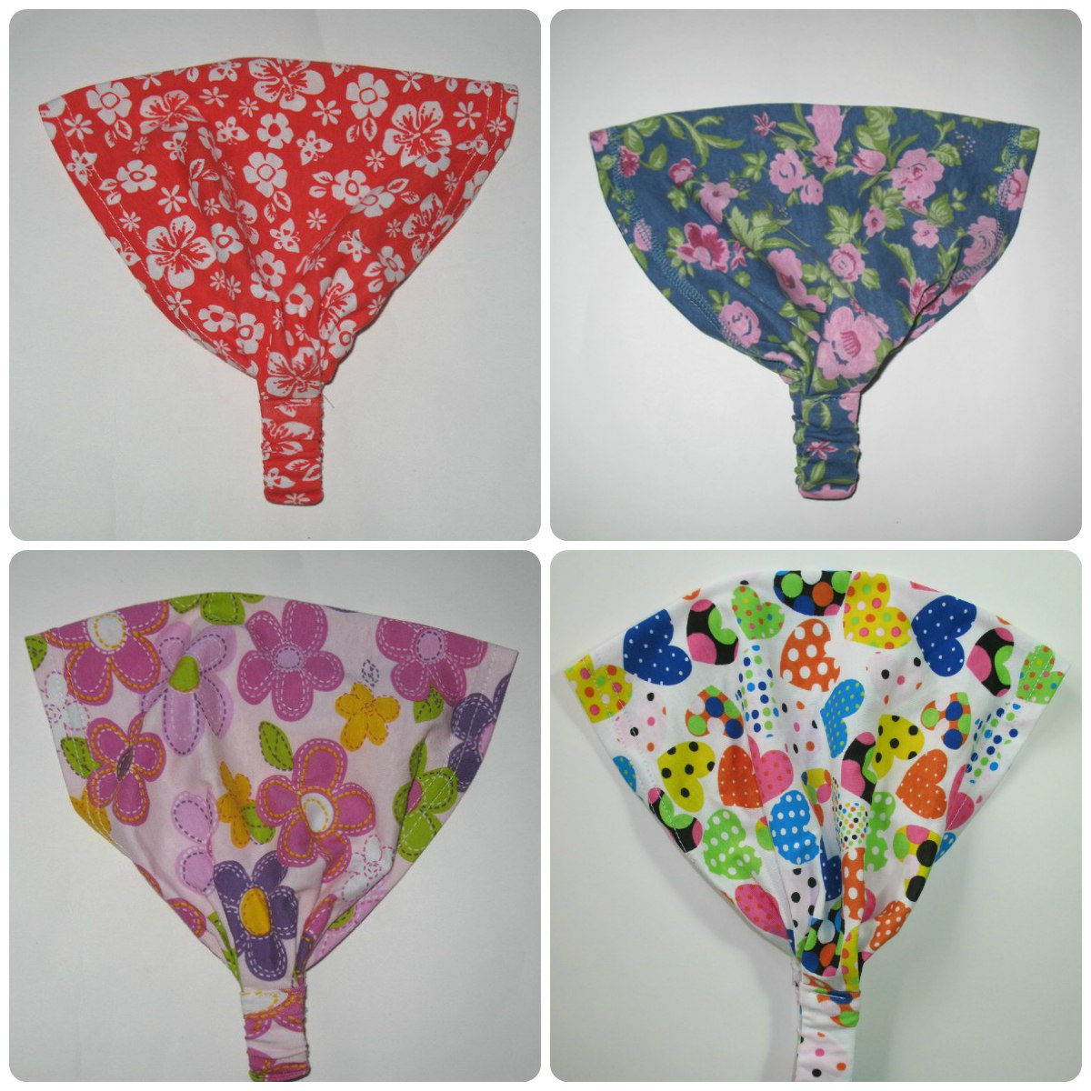 Все яркие и стильные)) Ношу косынки такие и я и дочка не первый год)) И на прогулки, и на море и на дачу и даже на самокатах катаемся в них..очень удобно и распущенные волосы не мешают)))