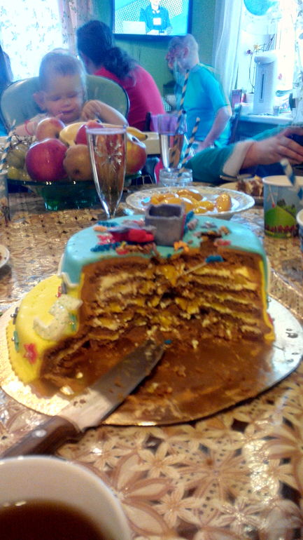 подкрепились сладеньким и пошли пускать салют в честь 5-летия именинника:)))