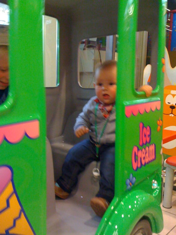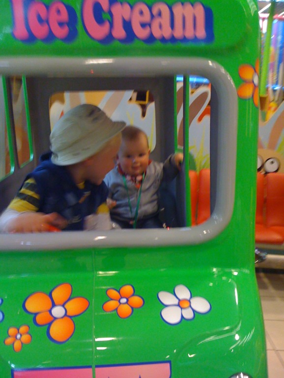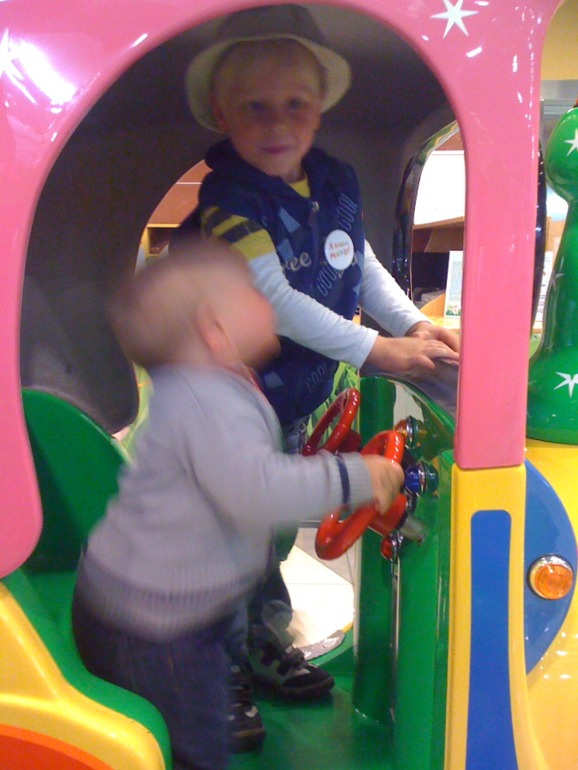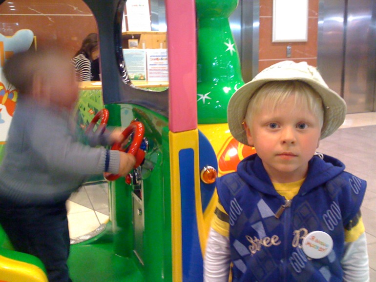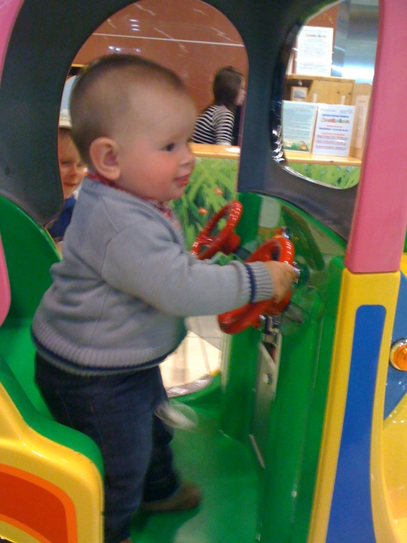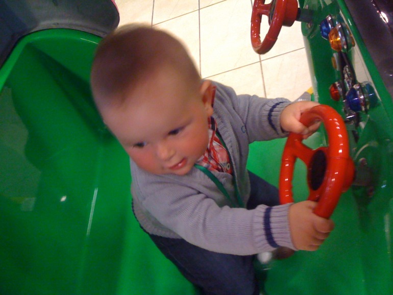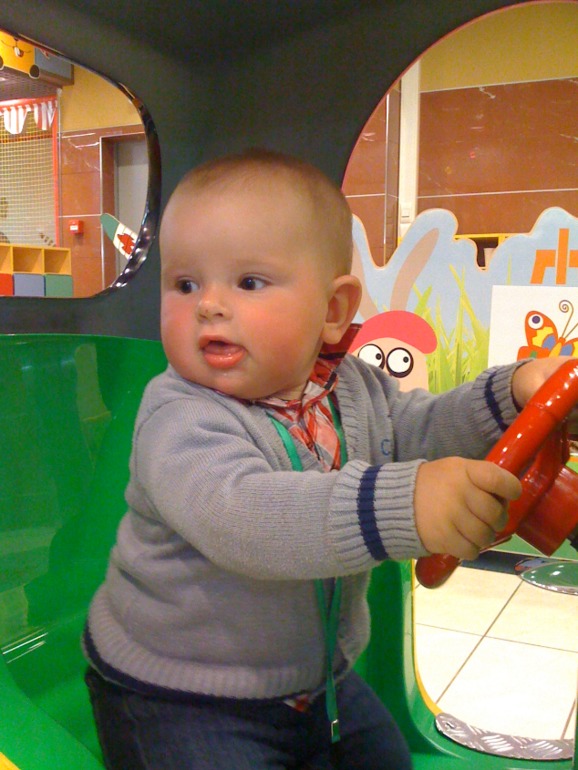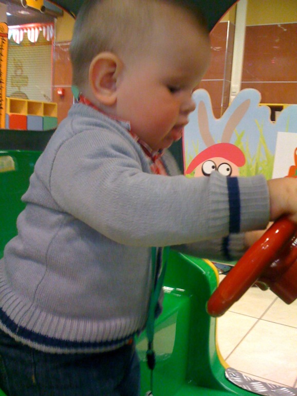 В качестве пассажира Кирюша был спокоен и невозмутим, но вот когда они сели в другую машинку...где Кирюшки тоже достался руль, практически не одной фотки не получилось-он всегда танцевал и прыгал:)))