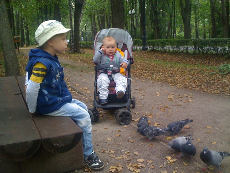 По беседкам, мостикам полазили, голубей покормили - белки даже семечки и печенье не подбегали кушать, были очень заняты ныканьем желудей:)))
