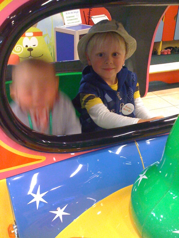 В качестве пассажира Кирюша был спокоен и невозмутим, но вот когда они сели в другую машинку...где Кирюшки тоже достался руль, практически не одной фотки не получилось-он всегда танцевал и прыгал:)))