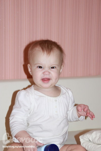 Ура!!!!Мы выздоровели!У нас 5 зубов и 6 на подходе,начали спать ночами,когда болели почти не спали.Перешли на 2 дневных сна,немного сдвинули график еды и спать теперь укладываемся немного позже,в 22 отбой)))Подъем в 9 утра-нам звонит папа и мы перемещаемся к маме в кровать,выковыриваем маме глазки,лезим ей в нос и уши,целуемся в губы и и всячески бесимся...естественно мама встаем и мы идем есть кашу и умываться.Ходить пока не ходим сами,с поддержкой за 2 и одну руку,сама может сделать 2 шага и бум)))Уже месяц наверное точно пьем из трубочки-поильник нас не впечатлил,а вот из трубочки дело идет намного веселее.В связи с болезнью не попали на беби йогу(((жаль,но сейчас нам через пару недель поставять 3 Пентаксим,а там уже продолжит и в клуб ходить и на йогу пойдем и поплавать...Планы...Авот собственно говоря и мы..